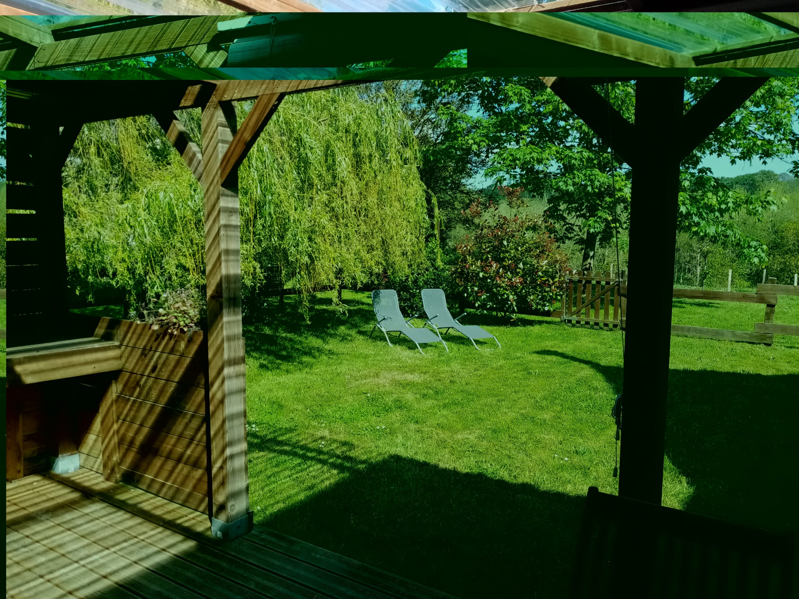 A l’extérieur, vous profiterez d’une terrasse couverte avec mobilier de jardin, transats et plancha à gaz. Barbecue sur demande. Jardin privé avec vue dégagée sur la campagne.