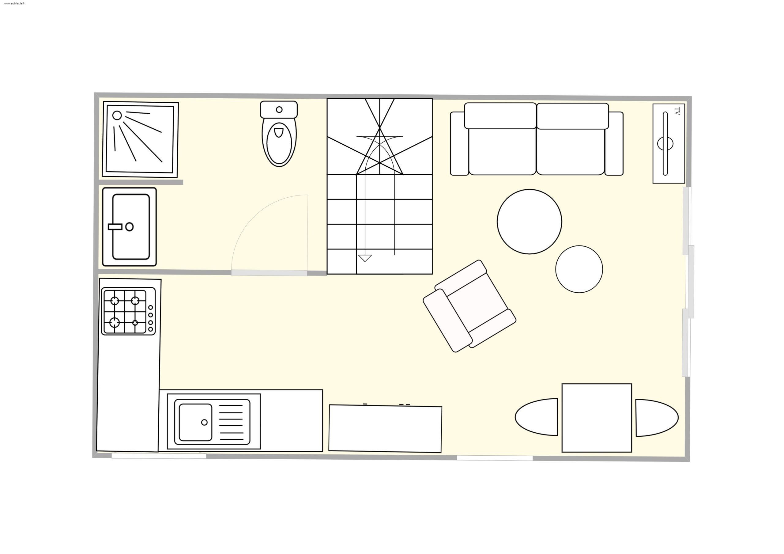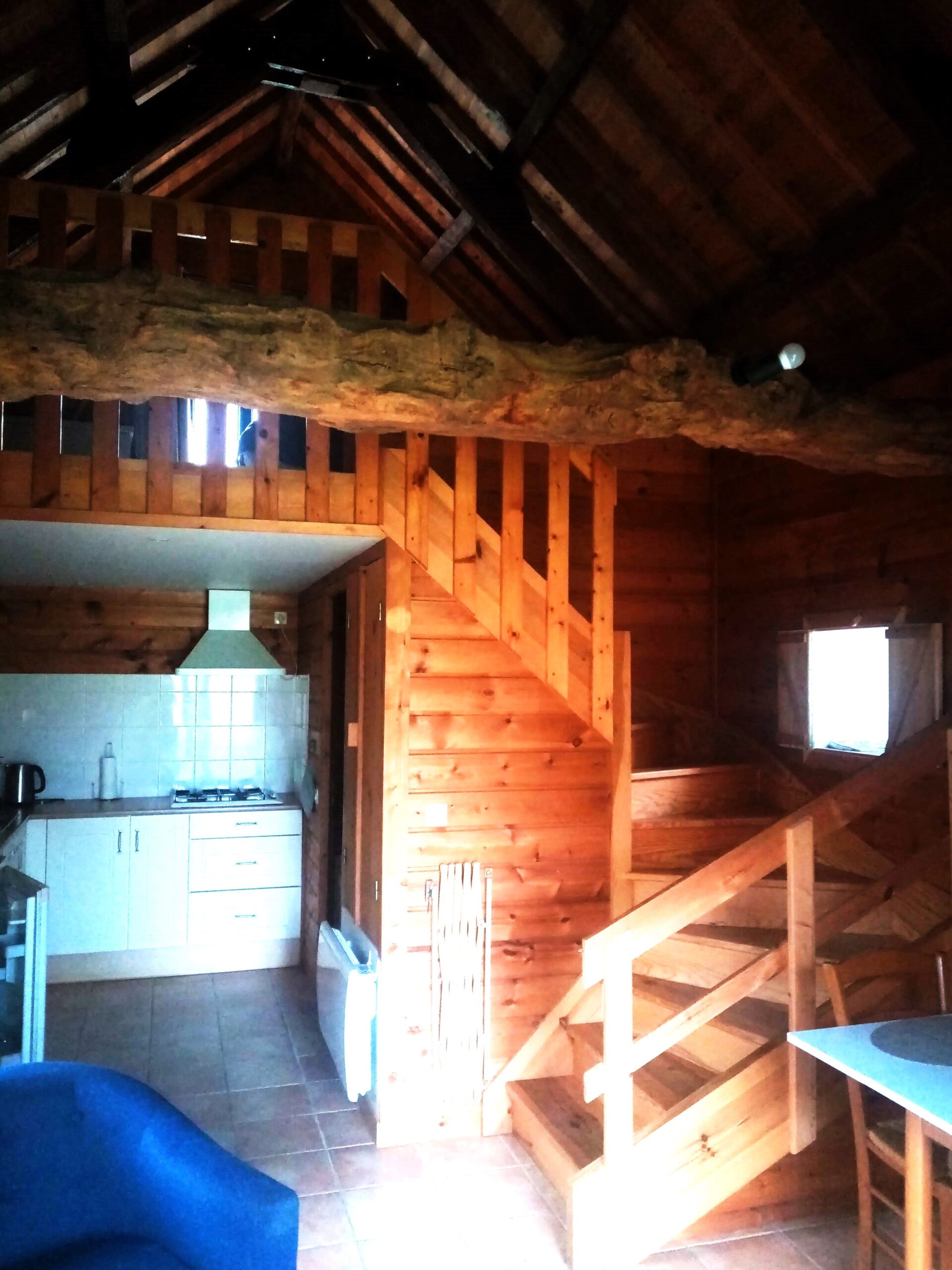 Vous y disposez d’1 cuisine ouverte équipée, 1 espace salon, salle à manger ; 1 salle d’eau avec douche et WC et 1 chambre mansardée 1 lit 140×200 en mezzanine accessible par un escalier.