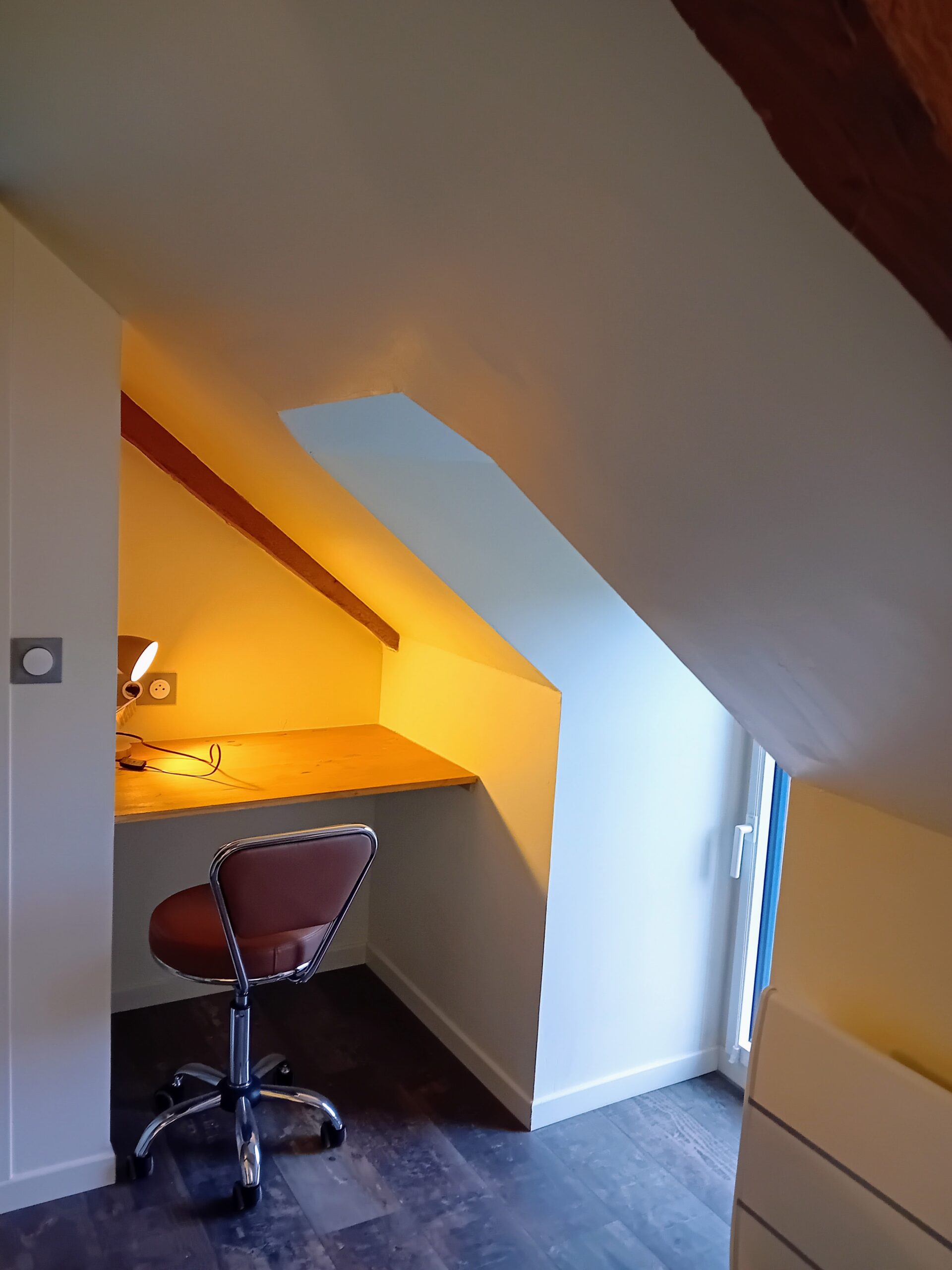 A l’étage, 2 chambres En Suite, chacune équipée de sa salle d’eau, WC et espace bureau. La première chambre dispose d’un lit 160×200 et la 2nde de 2 lits 90×200.